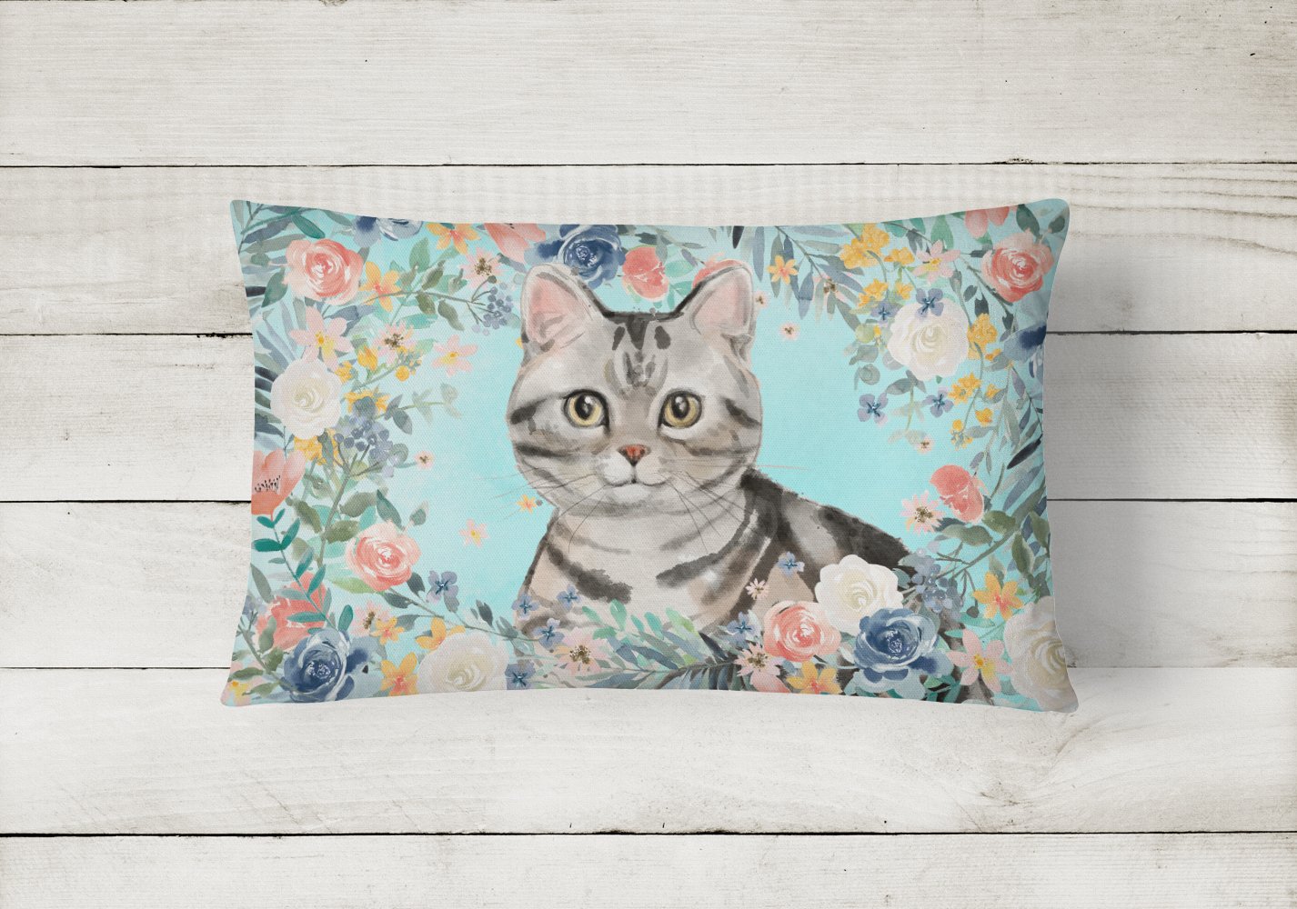 American Shorthair Spring Flowers Canvas Fabric Decorative Pillow CK3388PW1216