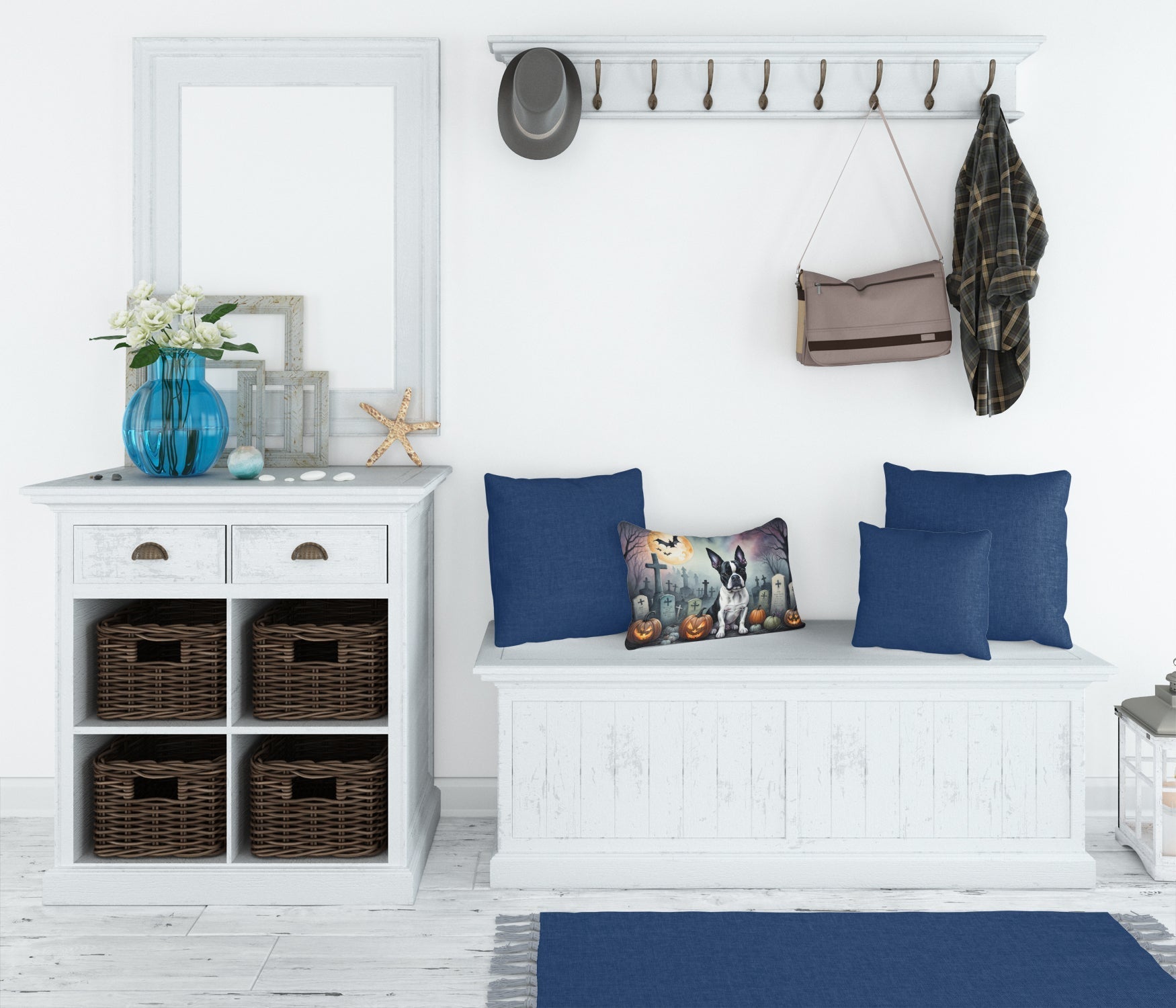 Boston Terrier Spooky Halloween Fabric Decorative Pillow