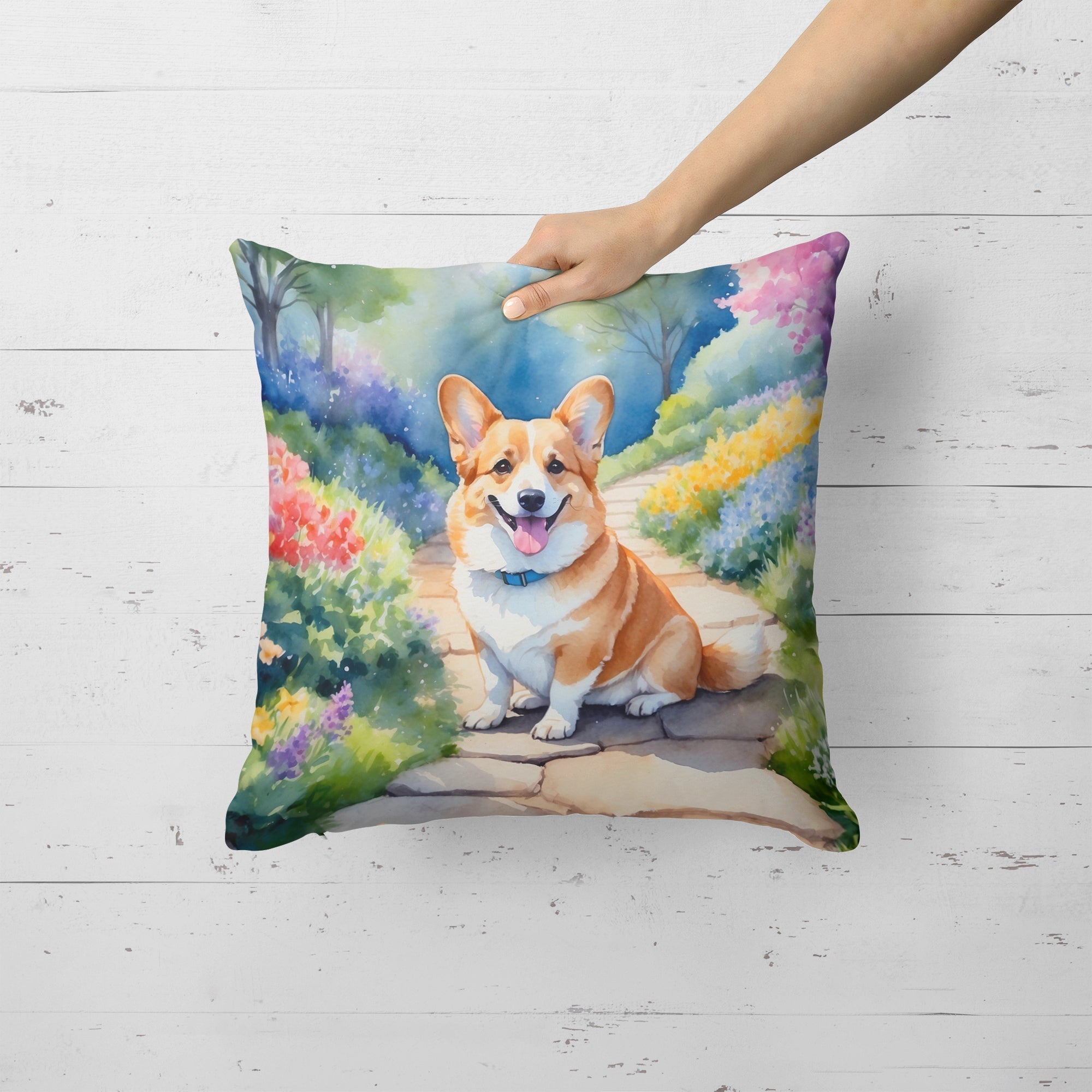 Decorate your space with Caroline's Treasures Corgi artwork on a Pillow. Bring a bit of Spring into your home with a Spring Pillow. Revitalize your outdoor or indoor living space with Caroline's Treasures 18x18 Fabric Decorative Pillow. With a generously sized dimension of approximately 18 inches by 18 inches, this pillow makes a comfortable and aesthetic addition to any seating area. Made from a unique, water-resistant material developed by Caroline's Treasures, the pillow sham is 100% polyester fabric that's durable and ready to weather any condition. Its vibrant, full-color artwork will not fade over time as it is dyed with color-fast dyes. Whether you place it on your patio furniture, porch, veranda, or indoor couch, its soft canvas fabric ensures a cozy experience. The pillow is handcrafted in the United States, featuring a sham created from three pieces of fabric and a polyester insert for enduring shape and overstuffed comfort. Despite being robustly built to endure the outdoors, it is as soft and snug as your favorite indoor cushions. Please note, as all Caroline's Treasures pillows are handmade, sizes may vary slightly, adding to the charm of this unique decorative item.
