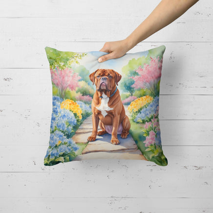 Decorate your space with Caroline's Treasures Dogue de Bordeaux artwork on a Pillow. Bring a bit of Spring into your home with a Spring Pillow. Revitalize your outdoor or indoor living space with Caroline's Treasures 18x18 Fabric Decorative Pillow. With a generously sized dimension of approximately 18 inches by 18 inches, this pillow makes a comfortable and aesthetic addition to any seating area. Made from a unique, water-resistant material developed by Caroline's Treasures, the pillow sham is 100% polyester fabric that's durable and ready to weather any condition. Its vibrant, full-color artwork will not fade over time as it is dyed with color-fast dyes. Whether you place it on your patio furniture, porch, veranda, or indoor couch, its soft canvas fabric ensures a cozy experience. The pillow is handcrafted in the United States, featuring a sham created from three pieces of fabric and a polyester insert for enduring shape and overstuffed comfort. Despite being robustly built to endure the outdoors, it is as soft and snug as your favorite indoor cushions. Please note, as all Caroline's Treasures pillows are handmade, sizes may vary slightly, adding to the charm of this unique decorative item.