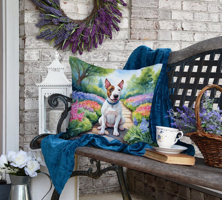 Decorate your space with Caroline's Treasures English Bull Terrier artwork on a Pillow. Bring a bit of Spring into your home with a Spring Pillow. Revitalize your outdoor or indoor living space with Caroline's Treasures 18x18 Fabric Decorative Pillow. With a generously sized dimension of approximately 18 inches by 18 inches, this pillow makes a comfortable and aesthetic addition to any seating area. Made from a unique, water-resistant material developed by Caroline's Treasures, the pillow sham is 100% polyester fabric that's durable and ready to weather any condition. Its vibrant, full-color artwork will not fade over time as it is dyed with color-fast dyes. Whether you place it on your patio furniture, porch, veranda, or indoor couch, its soft canvas fabric ensures a cozy experience. The pillow is handcrafted in the United States, featuring a sham created from three pieces of fabric and a polyester insert for enduring shape and overstuffed comfort. Despite being robustly built to endure the outdoors, it is as soft and snug as your favorite indoor cushions. Please note, as all Caroline's Treasures pillows are handmade, sizes may vary slightly, adding to the charm of this unique decorative item.