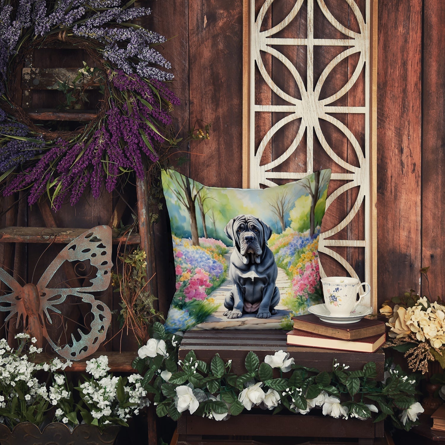 Decorate your space with Caroline's Treasures Neapolitan Mastiff artwork on a Pillow. Bring a bit of Spring into your home with a Spring Pillow. Revitalize your outdoor or indoor living space with Caroline's Treasures 18x18 Fabric Decorative Pillow. With a generously sized dimension of approximately 18 inches by 18 inches, this pillow makes a comfortable and aesthetic addition to any seating area. Made from a unique, water-resistant material developed by Caroline's Treasures, the pillow sham is 100% polyester fabric that's durable and ready to weather any condition. Its vibrant, full-color artwork will not fade over time as it is dyed with color-fast dyes. Whether you place it on your patio furniture, porch, veranda, or indoor couch, its soft canvas fabric ensures a cozy experience. The pillow is handcrafted in the United States, featuring a sham created from three pieces of fabric and a polyester insert for enduring shape and overstuffed comfort. Despite being robustly built to endure the outdoors, it is as soft and snug as your favorite indoor cushions. Please note, as all Caroline's Treasures pillows are handmade, sizes may vary slightly, adding to the charm of this unique decorative item.