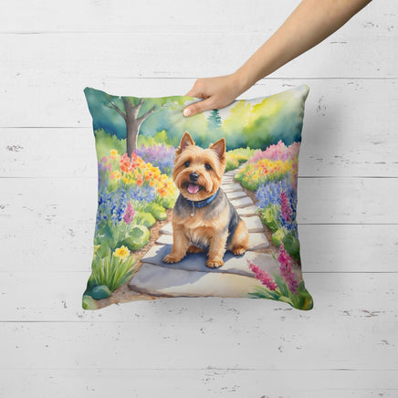 Decorate your space with Caroline's Treasures Norwich Terrier artwork on a Pillow. Bring a bit of Spring into your home with a Spring Pillow. Revitalize your outdoor or indoor living space with Caroline's Treasures 18x18 Fabric Decorative Pillow. With a generously sized dimension of approximately 18 inches by 18 inches, this pillow makes a comfortable and aesthetic addition to any seating area. Made from a unique, water-resistant material developed by Caroline's Treasures, the pillow sham is 100% polyester fabric that's durable and ready to weather any condition. Its vibrant, full-color artwork will not fade over time as it is dyed with color-fast dyes. Whether you place it on your patio furniture, porch, veranda, or indoor couch, its soft canvas fabric ensures a cozy experience. The pillow is handcrafted in the United States, featuring a sham created from three pieces of fabric and a polyester insert for enduring shape and overstuffed comfort. Despite being robustly built to endure the outdoors, it is as soft and snug as your favorite indoor cushions. Please note, as all Caroline's Treasures pillows are handmade, sizes may vary slightly, adding to the charm of this unique decorative item.