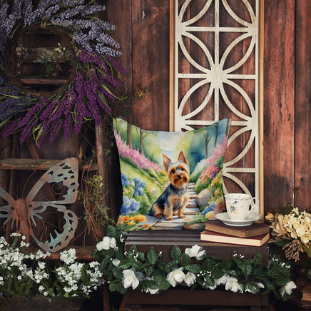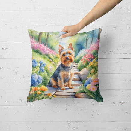 Decorate your space with Caroline's Treasures Silky Terrier artwork on a Pillow. Bring a bit of Spring into your home with a Spring Pillow. Revitalize your outdoor or indoor living space with Caroline's Treasures 18x18 Fabric Decorative Pillow. With a generously sized dimension of approximately 18 inches by 18 inches, this pillow makes a comfortable and aesthetic addition to any seating area. Made from a unique, water-resistant material developed by Caroline's Treasures, the pillow sham is 100% polyester fabric that's durable and ready to weather any condition. Its vibrant, full-color artwork will not fade over time as it is dyed with color-fast dyes. Whether you place it on your patio furniture, porch, veranda, or indoor couch, its soft canvas fabric ensures a cozy experience. The pillow is handcrafted in the United States, featuring a sham created from three pieces of fabric and a polyester insert for enduring shape and overstuffed comfort. Despite being robustly built to endure the outdoors, it is as soft and snug as your favorite indoor cushions. Please note, as all Caroline's Treasures pillows are handmade, sizes may vary slightly, adding to the charm of this unique decorative item.