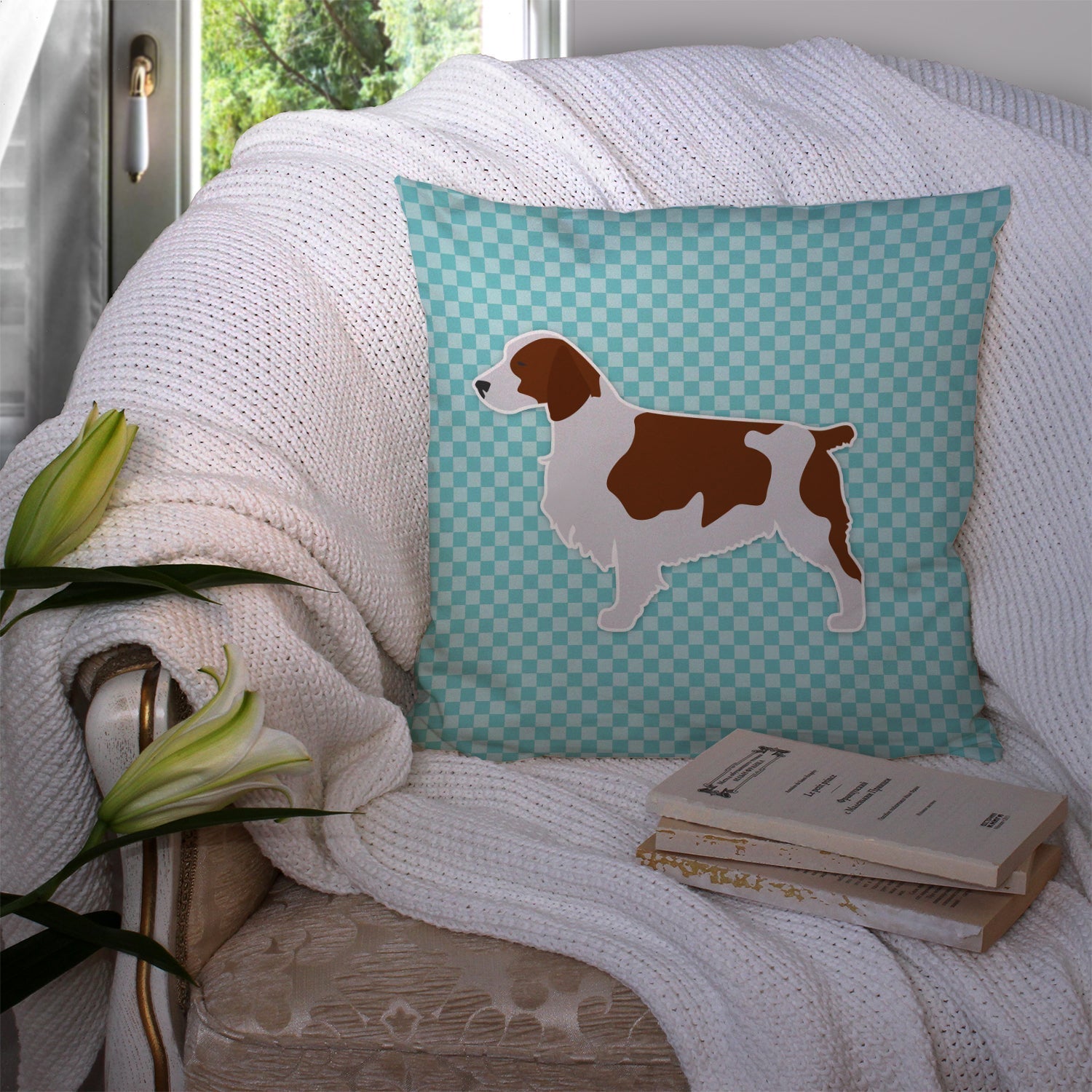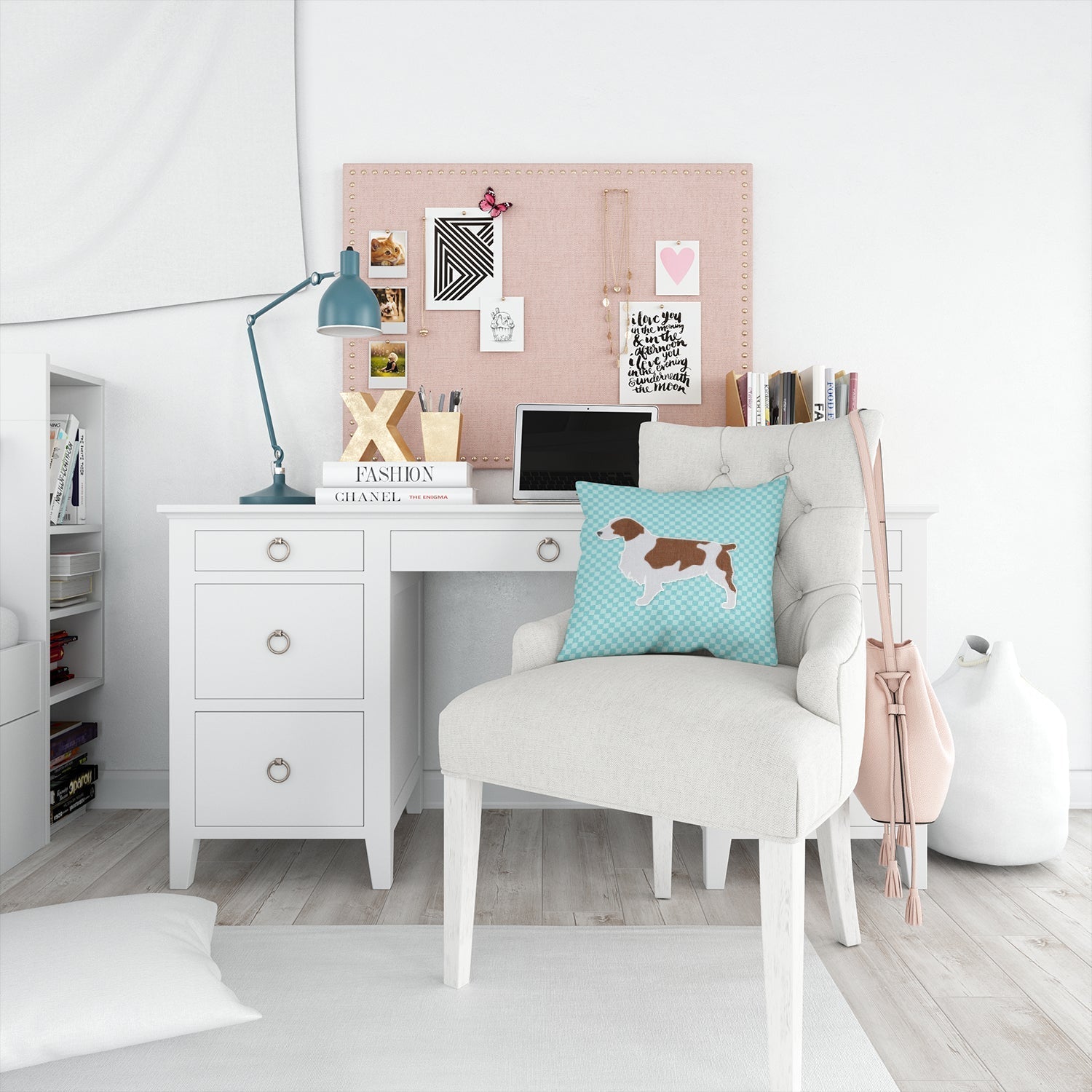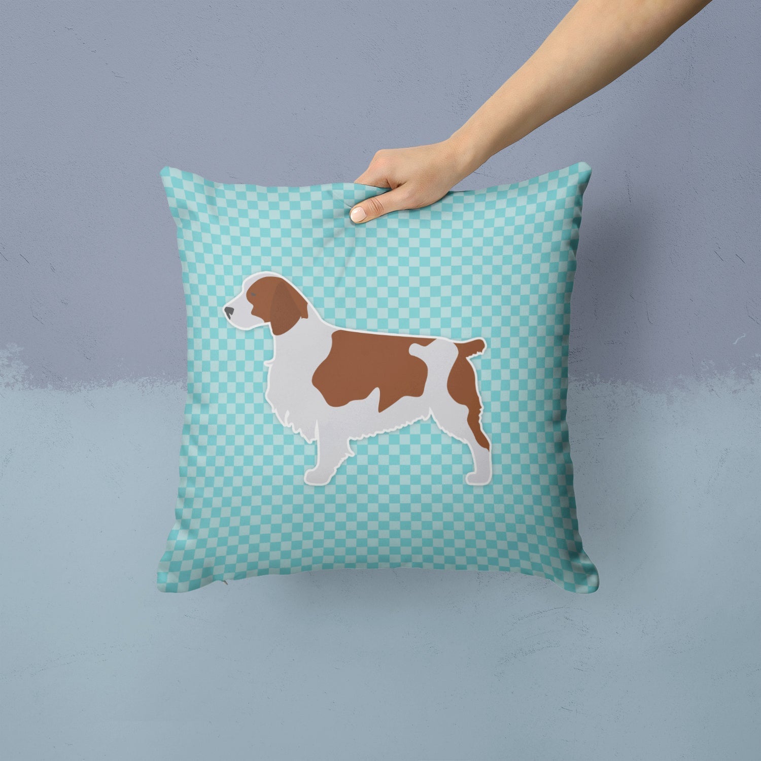 Welsh Springer Spaniel Checkerboard Blue Fabric Decorative Pillow BB3700PW1414