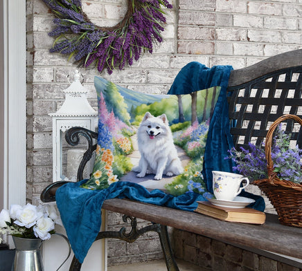 Decorate your space with Caroline's Treasures American Eskimo artwork on a Pillow. Bring a bit of Spring into your home with a Spring Pillow. Revitalize your outdoor or indoor living space with Caroline's Treasures 18x18 Fabric Decorative Pillow. With a generously sized dimension of approximately 18 inches by 18 inches, this pillow makes a comfortable and aesthetic addition to any seating area. Made from a unique, water-resistant material developed by Caroline's Treasures, the pillow sham is 100% polyester fabric that's durable and ready to weather any condition. Its vibrant, full-color artwork will not fade over time as it is dyed with color-fast dyes. Whether you place it on your patio furniture, porch, veranda, or indoor couch, its soft canvas fabric ensures a cozy experience. The pillow is handcrafted in the United States, featuring a sham created from three pieces of fabric and a polyester insert for enduring shape and overstuffed comfort. Despite being robustly built to endure the outdoors, it is as soft and snug as your favorite indoor cushions. Please note, as all Caroline's Treasures pillows are handmade, sizes may vary slightly, adding to the charm of this unique decorative item.