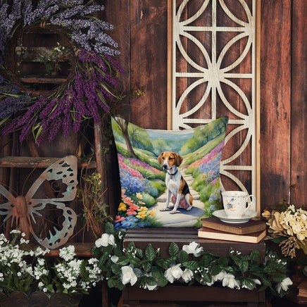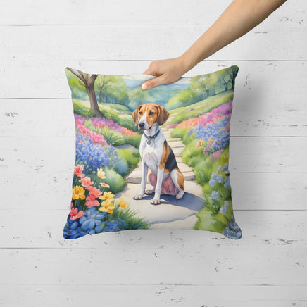 Decorate your space with Caroline's Treasures American Foxhound artwork on a Pillow. Bring a bit of Spring into your home with a Spring Pillow. Revitalize your outdoor or indoor living space with Caroline's Treasures 18x18 Fabric Decorative Pillow. With a generously sized dimension of approximately 18 inches by 18 inches, this pillow makes a comfortable and aesthetic addition to any seating area. Made from a unique, water-resistant material developed by Caroline's Treasures, the pillow sham is 100% polyester fabric that's durable and ready to weather any condition. Its vibrant, full-color artwork will not fade over time as it is dyed with color-fast dyes. Whether you place it on your patio furniture, porch, veranda, or indoor couch, its soft canvas fabric ensures a cozy experience. The pillow is handcrafted in the United States, featuring a sham created from three pieces of fabric and a polyester insert for enduring shape and overstuffed comfort. Despite being robustly built to endure the outdoors, it is as soft and snug as your favorite indoor cushions. Please note, as all Caroline's Treasures pillows are handmade, sizes may vary slightly, adding to the charm of this unique decorative item.