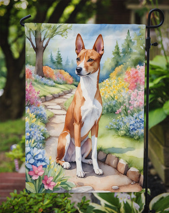 Decorate your space with our Basenji artwork on a Garden Flag. Bring a bit of Spring into your home with a Spring Garden Flag. Enhance the beauty of your garden, patio, or yard with Caroline's Treasures Decorative Garden Flag, proudly made in the USA. Crafted from two pieces of thick, double-sided polyester fabric, this 2-ply garden flag is designed to withstand various weather conditions, making it water-resistant and weatherproof. Featuring correctly readable words on both sides, this garden flag offers a delightful visual experience from any angle. With its heavier weight, it stands out among other garden flags, ensuring stability and durability even in wind, rain, and snow. Measuring approximately 11 1/4 inches by 15 1/2 inches, this flag allows you to personalize your outdoor decor. It comes with a 1 1/2-inch sleeve sewn in, allowing easy attachment to any standard garden flag stand or garden size porch hanger (sold separately). Make a statement in your outdoor space with Caroline's Treasures Decorative Garden Flag, a vibrant and high-quality flag that adds color and personality to your surroundings. Proudly made in the USA, it's a symbol of quality craftsmanship and attention to detail.