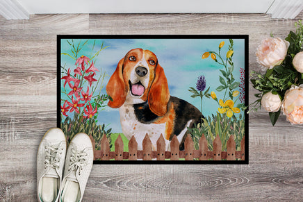 Decorate your space with Caroline's Treasures Basset Hound artwork on a Doormat. Bring a bit of Spring into your home with a Spring Doormat. Welcome your guests in style with Caroline's Treasures Artwork Door Mat, designed to withstand almost any weather condition. This mat, measuring approximately 18 by 27 inches, is held together by durable black binding tape. Its top layer, composed of polyester felt, is dyed with the eye-catching image you see on the mat. A few layers below provide the mat with stability, while its rubber bottom is stamped to help prevent slipping and ensures safety. Caroline's Treasures mat works wonderfully as both an indoor or outdoor door mat. For cleaning, simply hose it off with water or use a power washer - no need for any cleaner that produces suds. Avoid scrubbing with a brush, instead, opt for the vacuum on floor setting. Designed manufactured and printed in the USA, this mat is a perfect addition to your porch, outdoor kitchen, entryway, or any indoor space. Its unique design makes it a charming decorative rug that greets your guests and adds a stylish touch to your home decor.