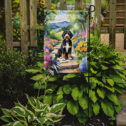 Decorate your space with our Bernedoodle artwork on a Garden Flag. Bring a bit of Spring into your home with a Spring Garden Flag. Enhance the beauty of your garden, patio, or yard with Caroline's Treasures Decorative Garden Flag, proudly made in the USA. Crafted from two pieces of thick, double-sided polyester fabric, this 2-ply garden flag is designed to withstand various weather conditions, making it water-resistant and weatherproof. Featuring correctly readable words on both sides, this garden flag offers a delightful visual experience from any angle. With its heavier weight, it stands out among other garden flags, ensuring stability and durability even in wind, rain, and snow. Measuring approximately 11 1/4 inches by 15 1/2 inches, this flag allows you to personalize your outdoor decor. It comes with a 1 1/2-inch sleeve sewn in, allowing easy attachment to any standard garden flag stand or garden size porch hanger (sold separately). Make a statement in your outdoor space with Caroline's Treasures Decorative Garden Flag, a vibrant and high-quality flag that adds color and personality to your surroundings. Proudly made in the USA, it's a symbol of quality craftsmanship and attention to detail.