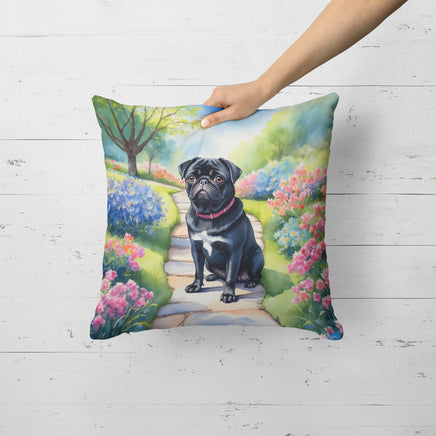Decorate your space with Caroline's Treasures Pug artwork on a Pillow. Bring a bit of Spring into your home with a Spring Pillow. Revitalize your outdoor or indoor living space with Caroline's Treasures 18x18 Fabric Decorative Pillow. With a generously sized dimension of approximately 18 inches by 18 inches, this pillow makes a comfortable and aesthetic addition to any seating area. Made from a unique, water-resistant material developed by Caroline's Treasures, the pillow sham is 100% polyester fabric that's durable and ready to weather any condition. Its vibrant, full-color artwork will not fade over time as it is dyed with color-fast dyes. Whether you place it on your patio furniture, porch, veranda, or indoor couch, its soft canvas fabric ensures a cozy experience. The pillow is handcrafted in the United States, featuring a sham created from three pieces of fabric and a polyester insert for enduring shape and overstuffed comfort. Despite being robustly built to endure the outdoors, it is as soft and snug as your favorite indoor cushions. Please note, as all Caroline's Treasures pillows are handmade, sizes may vary slightly, adding to the charm of this unique decorative item.