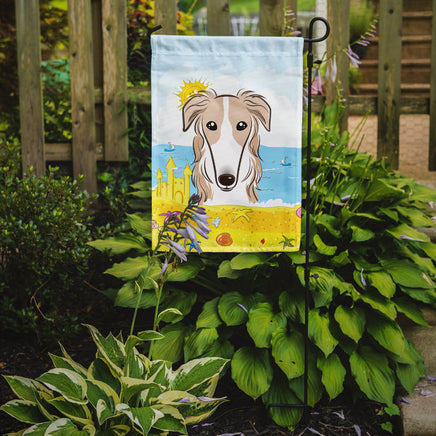 Decorate your space with Caroline's Treasures Borzoi/Russian Wolfhound artwork on a Garden Flag. Bring a bit of Summer into your home with a Summer Garden Flag. Enhance the beauty of your garden, patio, or yard with Caroline's Treasures Decorative Garden Flag, proudly made in the USA. Crafted from two pieces of thick, double-sided polyester fabric, this 2-ply garden flag is designed to withstand various weather conditions, making it water-resistant and weatherproof. Featuring correctly readable words on both sides, this garden flag offers a delightful visual experience from any angle. With its heavier weight, it stands out among other garden flags, ensuring stability and durability even in wind, rain, and snow. Measuring approximately 11 1/4 inches by 15 1/2 inches, this flag allows you to personalize your outdoor decor. It comes with a 1 1/2-inch sleeve sewn in, allowing easy attachment to any standard garden flag stand or garden size porch hanger (sold separately). Make a statement in your outdoor space with Caroline's Treasures Decorative Garden Flag, a vibrant and high-quality flag that adds color and personality to your surroundings. Proudly made in the USA, it's a symbol of quality craftsmanship and attention to detail.