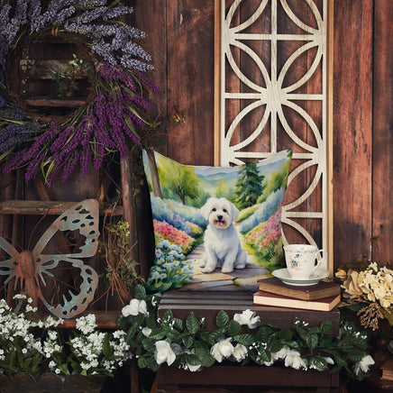 Decorate your space with Caroline's Treasures Coton de Tulear artwork on a Pillow. Bring a bit of Spring into your home with a Spring Pillow. Revitalize your outdoor or indoor living space with Caroline's Treasures 18x18 Fabric Decorative Pillow. With a generously sized dimension of approximately 18 inches by 18 inches, this pillow makes a comfortable and aesthetic addition to any seating area. Made from a unique, water-resistant material developed by Caroline's Treasures, the pillow sham is 100% polyester fabric that's durable and ready to weather any condition. Its vibrant, full-color artwork will not fade over time as it is dyed with color-fast dyes. Whether you place it on your patio furniture, porch, veranda, or indoor couch, its soft canvas fabric ensures a cozy experience. The pillow is handcrafted in the United States, featuring a sham created from three pieces of fabric and a polyester insert for enduring shape and overstuffed comfort. Despite being robustly built to endure the outdoors, it is as soft and snug as your favorite indoor cushions. Please note, as all Caroline's Treasures pillows are handmade, sizes may vary slightly, adding to the charm of this unique decorative item.