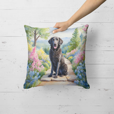 Decorate your space with Caroline's Treasures Curly-Coated Retriever artwork on a Pillow. Bring a bit of Spring into your home with a Spring Pillow. Revitalize your outdoor or indoor living space with Caroline's Treasures 18x18 Fabric Decorative Pillow. With a generously sized dimension of approximately 18 inches by 18 inches, this pillow makes a comfortable and aesthetic addition to any seating area. Made from a unique, water-resistant material developed by Caroline's Treasures, the pillow sham is 100% polyester fabric that's durable and ready to weather any condition. Its vibrant, full-color artwork will not fade over time as it is dyed with color-fast dyes. Whether you place it on your patio furniture, porch, veranda, or indoor couch, its soft canvas fabric ensures a cozy experience. The pillow is handcrafted in the United States, featuring a sham created from three pieces of fabric and a polyester insert for enduring shape and overstuffed comfort. Despite being robustly built to endure the outdoors, it is as soft and snug as your favorite indoor cushions. Please note, as all Caroline's Treasures pillows are handmade, sizes may vary slightly, adding to the charm of this unique decorative item.