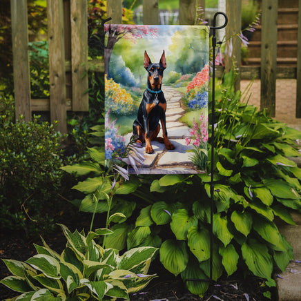 Decorate your space with Caroline's Treasures Doberman Pinscher artwork on a Garden Flag. Bring a bit of Spring into your home with a Spring Garden Flag. Enhance the beauty of your garden, patio, or yard with Caroline's Treasures Decorative Garden Flag, proudly made in the USA. Crafted from two pieces of thick, double-sided polyester fabric, this 2-ply garden flag is designed to withstand various weather conditions, making it water-resistant and weatherproof. Featuring correctly readable words on both sides, this garden flag offers a delightful visual experience from any angle. With its heavier weight, it stands out among other garden flags, ensuring stability and durability even in wind, rain, and snow. Measuring approximately 11 1/4 inches by 15 1/2 inches, this flag allows you to personalize your outdoor decor. It comes with a 1 1/2-inch sleeve sewn in, allowing easy attachment to any standard garden flag stand or garden size porch hanger (sold separately). Make a statement in your outdoor space with Caroline's Treasures Decorative Garden Flag, a vibrant and high-quality flag that adds color and personality to your surroundings. Proudly made in the USA, it's a symbol of quality craftsmanship and attention to detail.