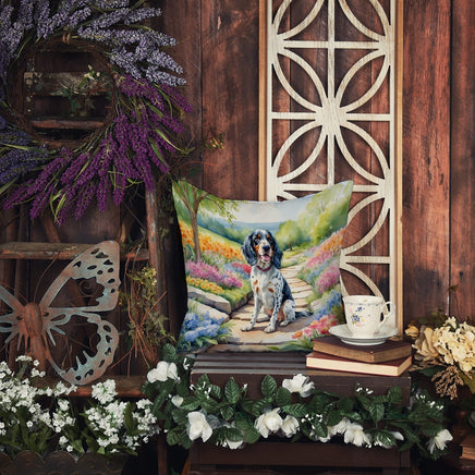 Decorate your space with Caroline's Treasures English Setter artwork on a Pillow. Bring a bit of Spring into your home with a Spring Pillow. Revitalize your outdoor or indoor living space with Caroline's Treasures 18x18 Fabric Decorative Pillow. With a generously sized dimension of approximately 18 inches by 18 inches, this pillow makes a comfortable and aesthetic addition to any seating area. Made from a unique, water-resistant material developed by Caroline's Treasures, the pillow sham is 100% polyester fabric that's durable and ready to weather any condition. Its vibrant, full-color artwork will not fade over time as it is dyed with color-fast dyes. Whether you place it on your patio furniture, porch, veranda, or indoor couch, its soft canvas fabric ensures a cozy experience. The pillow is handcrafted in the United States, featuring a sham created from three pieces of fabric and a polyester insert for enduring shape and overstuffed comfort. Despite being robustly built to endure the outdoors, it is as soft and snug as your favorite indoor cushions. Please note, as all Caroline's Treasures pillows are handmade, sizes may vary slightly, adding to the charm of this unique decorative item.
