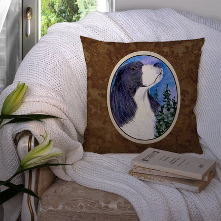 Decorate your space with Caroline's Treasures English Springer Spaniel artwork on a Pillow. Add a touch of vibrancy and comfort to your outdoor seating with Caroline's Treasures Fabric Decorative Pillow. Measuring approximately 14 inches by 14 inches, this outdoor pillow is crafted to elevate the appeal of your patio furniture, infusing it with vivid color and artistic flair. The pillow includes a 100% Polyester Fabric sham filled with a quality pillow form to provide superior comfort. Innovatively made from Caroline's Treasures brand new material, specifically woven for its water resistance, this pillow is designed for durability. The soft canvas fabric offers versatility in use, fit for your indoor couch or your outdoor patio, porch, or veranda. The fabric is dyed with colorfast dyes built for resilience against weather conditions, ensuring the pillow retains its beauty over time. Constructed by sewing three fabric pieces to create a sham, the polyester insert is then nestled inside to form the pillow, resulting in an overstuffed pillow that maintains its shape. Both the sham and the pillow insert are proudly made in the United States. As the pillows are handcrafted, there may be minor variations in size, further enhancing their unique charm. Experience comfort in style with Caroline's Treasures Fabric Decorative Pillow.