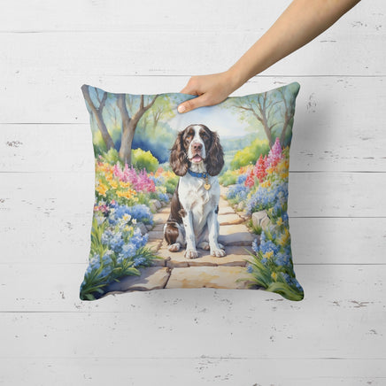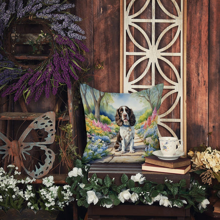 Decorate your space with Caroline's Treasures English Springer Spaniel artwork on a Pillow. Bring a bit of Spring into your home with a Spring Pillow. Revitalize your outdoor or indoor living space with Caroline's Treasures 18x18 Fabric Decorative Pillow. With a generously sized dimension of approximately 18 inches by 18 inches, this pillow makes a comfortable and aesthetic addition to any seating area. Made from a unique, water-resistant material developed by Caroline's Treasures, the pillow sham is 100% polyester fabric that's durable and ready to weather any condition. Its vibrant, full-color artwork will not fade over time as it is dyed with color-fast dyes. Whether you place it on your patio furniture, porch, veranda, or indoor couch, its soft canvas fabric ensures a cozy experience. The pillow is handcrafted in the United States, featuring a sham created from three pieces of fabric and a polyester insert for enduring shape and overstuffed comfort. Despite being robustly built to endure the outdoors, it is as soft and snug as your favorite indoor cushions. Please note, as all Caroline's Treasures pillows are handmade, sizes may vary slightly, adding to the charm of this unique decorative item.