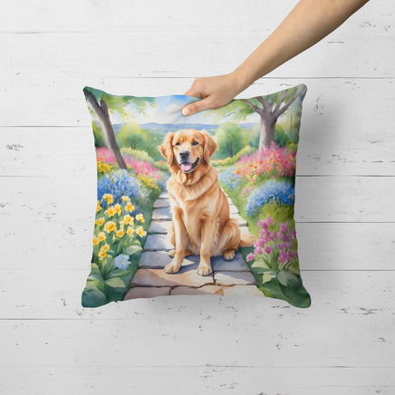Decorate your space with Caroline's Treasures Golden Retriever artwork on a Pillow. Bring a bit of Spring into your home with a Spring Pillow. Revitalize your outdoor or indoor living space with Caroline's Treasures 18x18 Fabric Decorative Pillow. With a generously sized dimension of approximately 18 inches by 18 inches, this pillow makes a comfortable and aesthetic addition to any seating area. Made from a unique, water-resistant material developed by Caroline's Treasures, the pillow sham is 100% polyester fabric that's durable and ready to weather any condition. Its vibrant, full-color artwork will not fade over time as it is dyed with color-fast dyes. Whether you place it on your patio furniture, porch, veranda, or indoor couch, its soft canvas fabric ensures a cozy experience. The pillow is handcrafted in the United States, featuring a sham created from three pieces of fabric and a polyester insert for enduring shape and overstuffed comfort. Despite being robustly built to endure the outdoors, it is as soft and snug as your favorite indoor cushions. Please note, as all Caroline's Treasures pillows are handmade, sizes may vary slightly, adding to the charm of this unique decorative item.