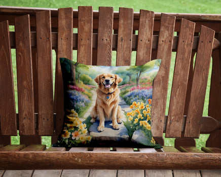 Decorate your space with Caroline's Treasures Golden Retriever artwork on a Pillow. Bring a bit of Spring into your home with a Spring Pillow. Add a touch of vibrancy and comfort to your outdoor seating with Caroline's Treasures Fabric Decorative Pillow. Measuring approximately 14 inches by 14 inches, this outdoor pillow is crafted to elevate the appeal of your patio furniture, infusing it with vivid color and artistic flair. The pillow includes a 100% Polyester Fabric sham filled with a quality pillow form to provide superior comfort. Innovatively made from Caroline's Treasures brand new material, specifically woven for its water resistance, this pillow is designed for durability. The soft canvas fabric offers versatility in use, fit for your indoor couch or your outdoor patio, porch, or veranda. The fabric is dyed with colorfast dyes built for resilience against weather conditions, ensuring the pillow retains its beauty over time. Constructed by sewing three fabric pieces to create a sham, the polyester insert is then nestled inside to form the pillow, resulting in an overstuffed pillow that maintains its shape. Both the sham and the pillow insert are proudly made in the United States. As the pillows are handcrafted, there may be minor variations in size, further enhancing their unique charm. Experience comfort in style with Caroline's Treasures Fabric Decorative Pillow.