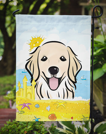 Decorate your space with Caroline's Treasures Golden Retriever artwork on a Garden Flag. Bring a bit of Summer into your home with a Summer Garden Flag. Enhance the beauty of your garden, patio, or yard with Caroline's Treasures Decorative Garden Flag, proudly made in the USA. Crafted from two pieces of thick, double-sided polyester fabric, this 2-ply garden flag is designed to withstand various weather conditions, making it water-resistant and weatherproof. Featuring correctly readable words on both sides, this garden flag offers a delightful visual experience from any angle. With its heavier weight, it stands out among other garden flags, ensuring stability and durability even in wind, rain, and snow. Measuring approximately 11 1/4 inches by 15 1/2 inches, this flag allows you to personalize your outdoor decor. It comes with a 1 1/2-inch sleeve sewn in, allowing easy attachment to any standard garden flag stand or garden size porch hanger (sold separately). Make a statement in your outdoor space with Caroline's Treasures Decorative Garden Flag, a vibrant and high-quality flag that adds color and personality to your surroundings. Proudly made in the USA, it's a symbol of quality craftsmanship and attention to detail.