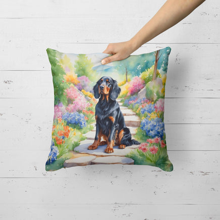 Decorate your space with Caroline's Treasures Gordon Setter artwork on a Pillow. Bring a bit of Spring into your home with a Spring Pillow. Revitalize your outdoor or indoor living space with Caroline's Treasures 18x18 Fabric Decorative Pillow. With a generously sized dimension of approximately 18 inches by 18 inches, this pillow makes a comfortable and aesthetic addition to any seating area. Made from a unique, water-resistant material developed by Caroline's Treasures, the pillow sham is 100% polyester fabric that's durable and ready to weather any condition. Its vibrant, full-color artwork will not fade over time as it is dyed with color-fast dyes. Whether you place it on your patio furniture, porch, veranda, or indoor couch, its soft canvas fabric ensures a cozy experience. The pillow is handcrafted in the United States, featuring a sham created from three pieces of fabric and a polyester insert for enduring shape and overstuffed comfort. Despite being robustly built to endure the outdoors, it is as soft and snug as your favorite indoor cushions. Please note, as all Caroline's Treasures pillows are handmade, sizes may vary slightly, adding to the charm of this unique decorative item.