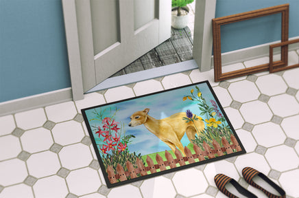 Decorate your space with Caroline's Treasures Italian Greyhound artwork on a Doormat. Bring a bit of Spring into your home with a Spring Doormat. Welcome your guests in style with Caroline's Treasures Artwork Door Mat, designed to withstand almost any weather condition. This mat, measuring approximately 18 by 27 inches, is held together by durable black binding tape. Its top layer, composed of polyester felt, is dyed with the eye-catching image you see on the mat. A few layers below provide the mat with stability, while its rubber bottom is stamped to help prevent slipping and ensures safety. Caroline's Treasures mat works wonderfully as both an indoor or outdoor door mat. For cleaning, simply hose it off with water or use a power washer - no need for any cleaner that produces suds. Avoid scrubbing with a brush, instead, opt for the vacuum on floor setting. Designed manufactured and printed in the USA, this mat is a perfect addition to your porch, outdoor kitchen, entryway, or any indoor space. Its unique design makes it a charming decorative rug that greets your guests and adds a stylish touch to your home decor.
