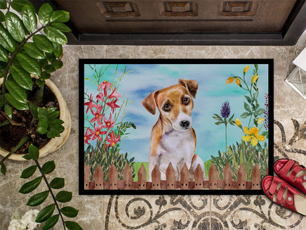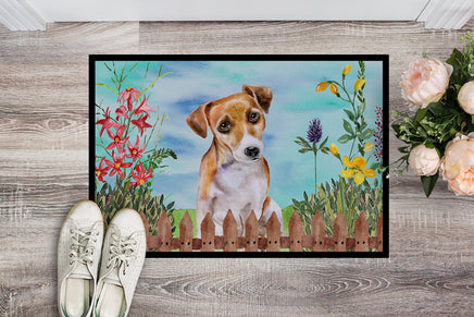 Decorate your space with Caroline's Treasures Jack Russell Terrier artwork on a Doormat. Bring a bit of Spring into your home with a Spring Doormat. Welcome your guests in style with Caroline's Treasures Artwork Door Mat, designed to withstand almost any weather condition. This mat, measuring approximately 18 by 27 inches, is held together by durable black binding tape. Its top layer, composed of polyester felt, is dyed with the eye-catching image you see on the mat. A few layers below provide the mat with stability, while its rubber bottom is stamped to help prevent slipping and ensures safety. Caroline's Treasures mat works wonderfully as both an indoor or outdoor door mat. For cleaning, simply hose it off with water or use a power washer - no need for any cleaner that produces suds. Avoid scrubbing with a brush, instead, opt for the vacuum on floor setting. Designed manufactured and printed in the USA, this mat is a perfect addition to your porch, outdoor kitchen, entryway, or any indoor space. Its unique design makes it a charming decorative rug that greets your guests and adds a stylish touch to your home decor.