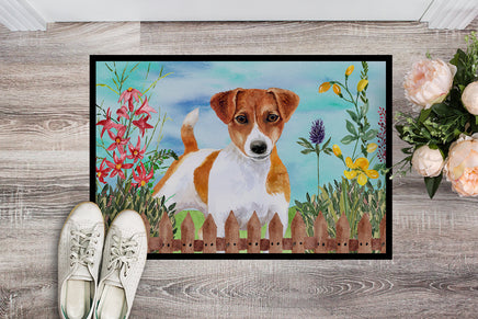Decorate your space with Caroline's Treasures Jack Russell Terrier artwork on a Doormat. Bring a bit of Spring into your home with a Spring Doormat. Welcome your guests in style with Caroline's Treasures Artwork Door Mat, designed to withstand almost any weather condition. This mat, measuring approximately 18 by 27 inches, is held together by durable black binding tape. Its top layer, composed of polyester felt, is dyed with the eye-catching image you see on the mat. A few layers below provide the mat with stability, while its rubber bottom is stamped to help prevent slipping and ensures safety. Caroline's Treasures mat works wonderfully as both an indoor or outdoor door mat. For cleaning, simply hose it off with water or use a power washer - no need for any cleaner that produces suds. Avoid scrubbing with a brush, instead, opt for the vacuum on floor setting. Designed manufactured and printed in the USA, this mat is a perfect addition to your porch, outdoor kitchen, entryway, or any indoor space. Its unique design makes it a charming decorative rug that greets your guests and adds a stylish touch to your home decor.