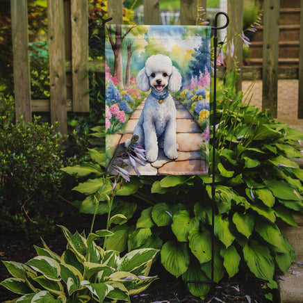 Decorate your space with Caroline's Treasures Poodle artwork on a Garden Flag. Bring a bit of Spring into your home with a Spring Garden Flag. Enhance the beauty of your garden, patio, or yard with Caroline's Treasures Decorative Garden Flag, proudly made in the USA. Crafted from two pieces of thick, double-sided polyester fabric, this 2-ply garden flag is designed to withstand various weather conditions, making it water-resistant and weatherproof. Featuring correctly readable words on both sides, this garden flag offers a delightful visual experience from any angle. With its heavier weight, it stands out among other garden flags, ensuring stability and durability even in wind, rain, and snow. Measuring approximately 11 1/4 inches by 15 1/2 inches, this flag allows you to personalize your outdoor decor. It comes with a 1 1/2-inch sleeve sewn in, allowing easy attachment to any standard garden flag stand or garden size porch hanger (sold separately). Make a statement in your outdoor space with Caroline's Treasures Decorative Garden Flag, a vibrant and high-quality flag that adds color and personality to your surroundings. Proudly made in the USA, it's a symbol of quality craftsmanship and attention to detail.