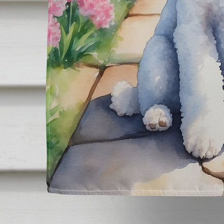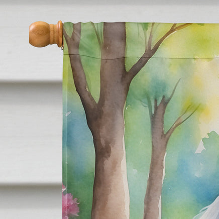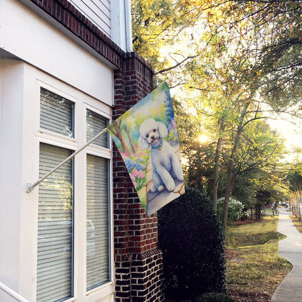 White Poodle Spring Path House Flag