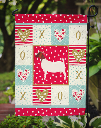 Decorate your space with Caroline's Treasures Valentine's Day Boer Goat artwork on a Garden Flag. Enhance the beauty of your garden, patio, or yard with Caroline's Treasures Decorative Garden Flag, proudly made in the USA. Crafted from two pieces of thick, double-sided polyester fabric, this 2-ply garden flag is designed to withstand various weather conditions, making it water-resistant and weatherproof. Featuring correctly readable words on both sides, this garden flag offers a delightful visual experience from any angle. With its heavier weight, it stands out among other garden flags, ensuring stability and durability even in wind, rain, and snow. Measuring approximately 11 1/4 inches by 15 1/2 inches, this flag allows you to personalize your outdoor decor. It comes with a 1 1/2-inch sleeve sewn in, allowing easy attachment to any standard garden flag stand or garden size porch hanger (sold separately). Make a statement in your outdoor space with Caroline's Treasures Decorative Garden Flag, a vibrant and high-quality flag that adds color and personality to your surroundings. Proudly made in the USA, it's a symbol of quality craftsmanship and attention to detail.
