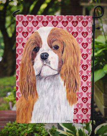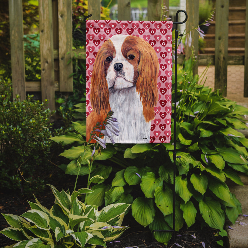 Decorate your space with Caroline's Treasures Valentine's Day Cavalier King Charles Spaniel artwork on a Garden Flag. Enhance the beauty of your garden, patio, or yard with Caroline's Treasures Decorative Garden Flag, proudly made in the USA. Crafted from two pieces of thick, double-sided polyester fabric, this 2-ply garden flag is designed to withstand various weather conditions, making it water-resistant and weatherproof. Featuring correctly readable words on both sides, this garden flag offers a delightful visual experience from any angle. With its heavier weight, it stands out among other garden flags, ensuring stability and durability even in wind, rain, and snow. Measuring approximately 11 1/4 inches by 15 1/2 inches, this flag allows you to personalize your outdoor decor. It comes with a 1 1/2-inch sleeve sewn in, allowing easy attachment to any standard garden flag stand or garden size porch hanger (sold separately). Make a statement in your outdoor space with Caroline's Treasures Decorative Garden Flag, a vibrant and high-quality flag that adds color and personality to your surroundings. Proudly made in the USA, it's a symbol of quality craftsmanship and attention to detail.