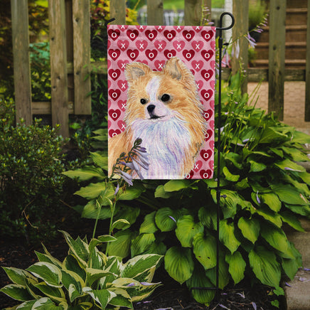 Decorate your space with Caroline's Treasures Valentine's Day Chihuahua artwork on a Garden Flag. Enhance the beauty of your garden, patio, or yard with Caroline's Treasures Decorative Garden Flag, proudly made in the USA. Crafted from two pieces of thick, double-sided polyester fabric, this 2-ply garden flag is designed to withstand various weather conditions, making it water-resistant and weatherproof. Featuring correctly readable words on both sides, this garden flag offers a delightful visual experience from any angle. With its heavier weight, it stands out among other garden flags, ensuring stability and durability even in wind, rain, and snow. Measuring approximately 11 1/4 inches by 15 1/2 inches, this flag allows you to personalize your outdoor decor. It comes with a 1 1/2-inch sleeve sewn in, allowing easy attachment to any standard garden flag stand or garden size porch hanger (sold separately). Make a statement in your outdoor space with Caroline's Treasures Decorative Garden Flag, a vibrant and high-quality flag that adds color and personality to your surroundings. Proudly made in the USA, it's a symbol of quality craftsmanship and attention to detail.