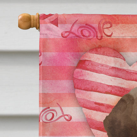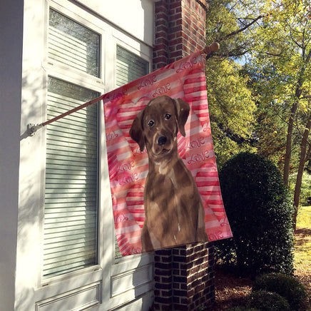 Decorate your space with Caroline's Treasures Valentine's Day Labrador Retriever artwork on a Large Flag. Presenting Caroline's Treasures Heavy Duty Polyester House Size Decorative Sleeve Pole Flag, a vibrant addition to enhance the aesthetic appeal of your home. This large decorative flag, measuring approximately 28 x 40 inches, offers ample coverage and visibility. Each flag is meticulously sewn and made individually, ensuring a unique piece that may slightly vary in size. It's a sleeve pole flag, designed to fit a standard decorative flag pole effortlessly. Please note that the flag pole and bracket are not included and should be purchased separately. What sets Caroline's Treasures flag apart is its dual-sided print. The design is mirrored on both sides of the fabric, allowing for uniform visibility regardless of the angle. To ensure lasting vibrancy and durability, the dyes are heat-set into the fabric. This ensures your flag remains bright and captivating through various weather conditions. Elevate the look of your home with Caroline's Treasures Heavy Duty Polyester House Size Decorative Sleeve Pole Flag!