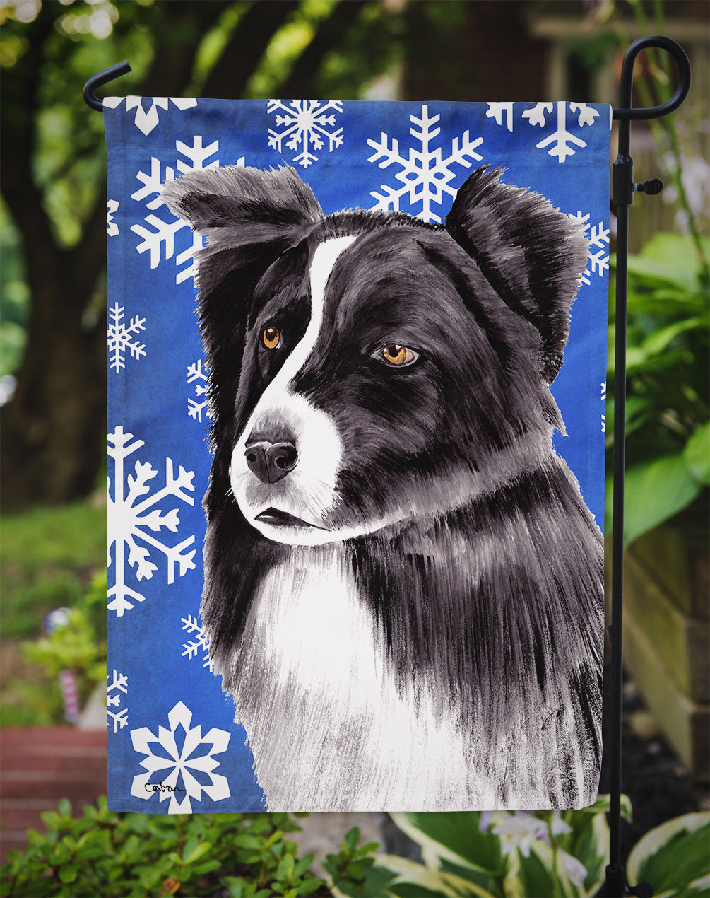 Border Collie Winter Snowflakes Holiday Flag Garden Size