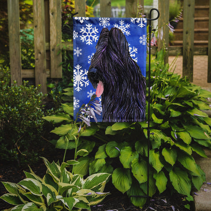 Decorate your space with Caroline's Treasures Christmas Briard artwork on a Garden Flag. Bring a bit of Winter into your home with a Winter Garden Flag. Enhance the beauty of your garden, patio, or yard with Caroline's Treasures Decorative Garden Flag, proudly made in the USA. Crafted from two pieces of thick, double-sided polyester fabric, this 2-ply garden flag is designed to withstand various weather conditions, making it water-resistant and weatherproof. Featuring correctly readable words on both sides, this garden flag offers a delightful visual experience from any angle. With its heavier weight, it stands out among other garden flags, ensuring stability and durability even in wind, rain, and snow. Measuring approximately 11 1/4 inches by 15 1/2 inches, this flag allows you to personalize your outdoor decor. It comes with a 1 1/2-inch sleeve sewn in, allowing easy attachment to any standard garden flag stand or garden size porch hanger (sold separately). Make a statement in your outdoor space with Caroline's Treasures Decorative Garden Flag, a vibrant and high-quality flag that adds color and personality to your surroundings. Proudly made in the USA, it's a symbol of quality craftsmanship and attention to detail.