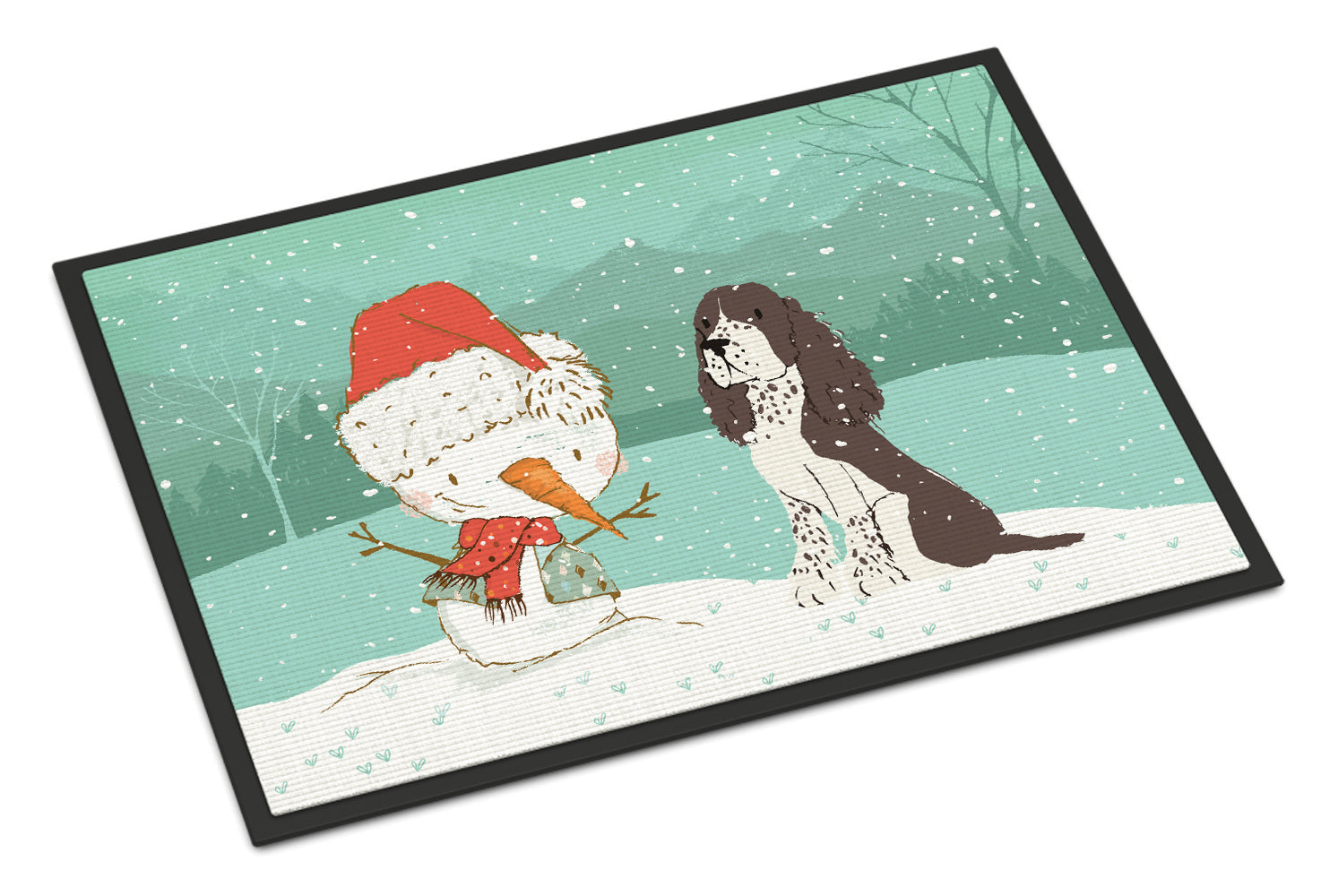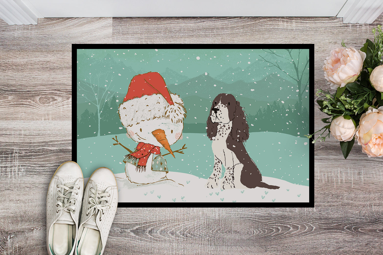 Brown English Springer Spaniel Snowman Christmas Indoor or Outdoor Mat 18x27 CK2074MAT