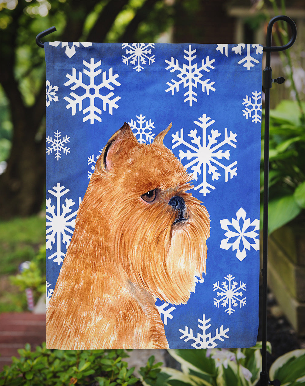 Decorate your space with Caroline's Treasures Christmas Brussels Griffon artwork on a Garden Flag. Bring a bit of Winter into your home with a Winter Garden Flag. Enhance the beauty of your garden, patio, or yard with Caroline's Treasures Decorative Garden Flag, proudly made in the USA. Crafted from two pieces of thick, double-sided polyester fabric, this 2-ply garden flag is designed to withstand various weather conditions, making it water-resistant and weatherproof. Featuring correctly readable words on both sides, this garden flag offers a delightful visual experience from any angle. With its heavier weight, it stands out among other garden flags, ensuring stability and durability even in wind, rain, and snow. Measuring approximately 11 1/4 inches by 15 1/2 inches, this flag allows you to personalize your outdoor decor. It comes with a 1 1/2-inch sleeve sewn in, allowing easy attachment to any standard garden flag stand or garden size porch hanger (sold separately). Make a statement in your outdoor space with Caroline's Treasures Decorative Garden Flag, a vibrant and high-quality flag that adds color and personality to your surroundings. Proudly made in the USA, it's a symbol of quality craftsmanship and attention to detail.