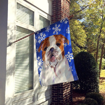 Bulldog English Winter Snowflakes Holiday Flag Canvas House Size