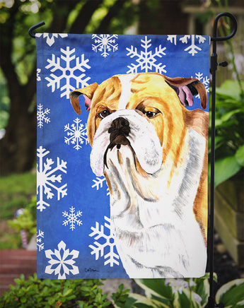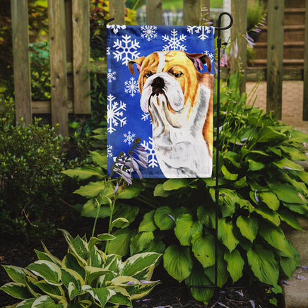 Bulldog English Winter Snowflakes Holiday Flag Garden Size