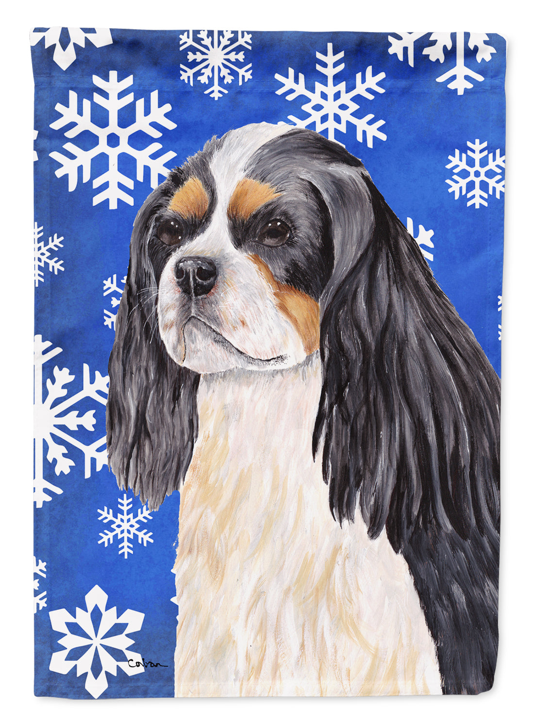 Cavalier Spaniel Winter Snowflakes Holiday Flag Canvas House Size