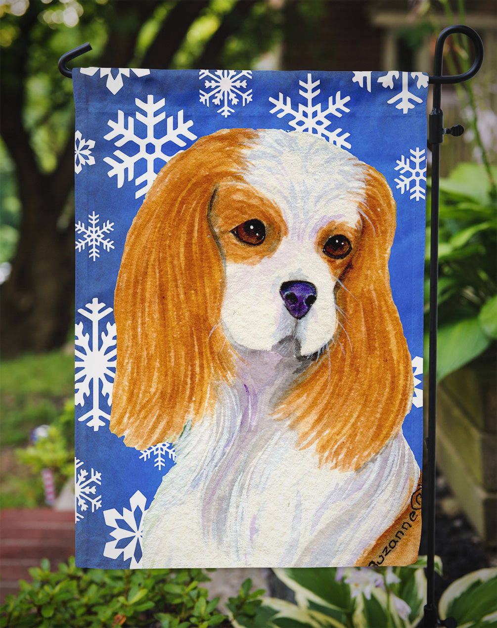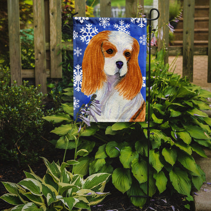 Cavalier Spaniel Winter Snowflakes Holiday Flag Garden Size