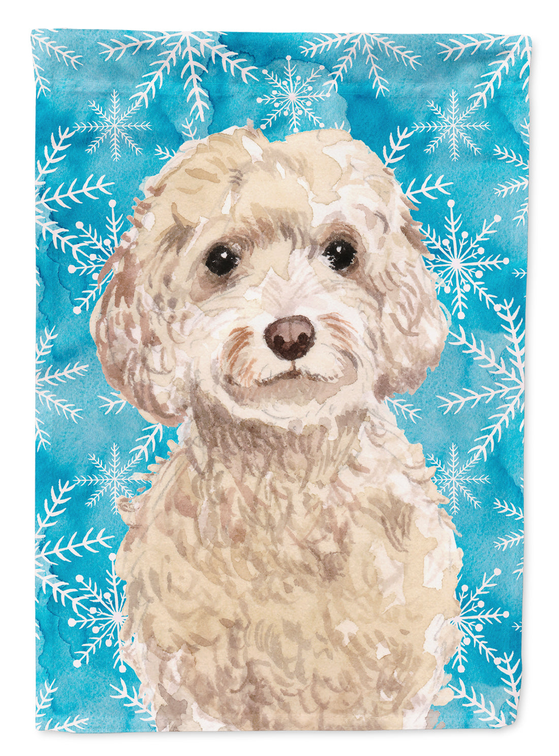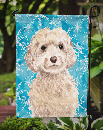 Decorate your space with our Cockapoo artwork on a Garden Flag. Bring a bit of Winter into your home with a Winter Garden Flag. Enhance the beauty of your garden, patio, or yard with Caroline's Treasures Decorative Garden Flag, proudly made in the USA. Crafted from two pieces of thick, double-sided polyester fabric, this 2-ply garden flag is designed to withstand various weather conditions, making it water-resistant and weatherproof. Featuring correctly readable words on both sides, this garden flag offers a delightful visual experience from any angle. With its heavier weight, it stands out among other garden flags, ensuring stability and durability even in wind, rain, and snow. Measuring approximately 11 1/4 inches by 15 1/2 inches, this flag allows you to personalize your outdoor decor. It comes with a 1 1/2-inch sleeve sewn in, allowing easy attachment to any standard garden flag stand or garden size porch hanger (sold separately). Make a statement in your outdoor space with Caroline's Treasures Decorative Garden Flag, a vibrant and high-quality flag that adds color and personality to your surroundings. Proudly made in the USA, it's a symbol of quality craftsmanship and attention to detail.