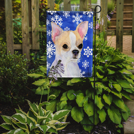 Decorate your space with Caroline's Treasures Christmas Chihuahua artwork on a Garden Flag. Bring a bit of Winter into your home with a Winter Garden Flag. Enhance the beauty of your garden, patio, or yard with Caroline's Treasures Decorative Garden Flag, proudly made in the USA. Crafted from two pieces of thick, double-sided polyester fabric, this 2-ply garden flag is designed to withstand various weather conditions, making it water-resistant and weatherproof. Featuring correctly readable words on both sides, this garden flag offers a delightful visual experience from any angle. With its heavier weight, it stands out among other garden flags, ensuring stability and durability even in wind, rain, and snow. Measuring approximately 11 1/4 inches by 15 1/2 inches, this flag allows you to personalize your outdoor decor. It comes with a 1 1/2-inch sleeve sewn in, allowing easy attachment to any standard garden flag stand or garden size porch hanger (sold separately). Make a statement in your outdoor space with Caroline's Treasures Decorative Garden Flag, a vibrant and high-quality flag that adds color and personality to your surroundings. Proudly made in the USA, it's a symbol of quality craftsmanship and attention to detail.
