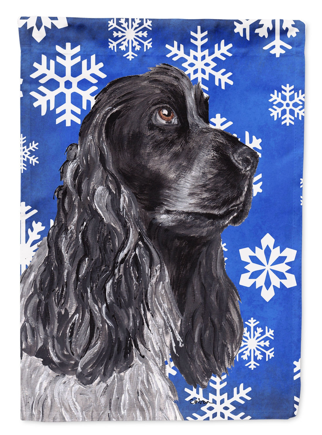 Decorate your space with our Christmas Cocker Spaniel artwork on a Garden Flag. Bring a bit of Winter into your home with a Winter Garden Flag. Enhance the beauty of your garden, patio, or yard with Caroline's Treasures Decorative Garden Flag, proudly made in the USA. Crafted from two pieces of thick, double-sided polyester fabric, this 2-ply garden flag is designed to withstand various weather conditions, making it water-resistant and weatherproof. Featuring correctly readable words on both sides, this garden flag offers a delightful visual experience from any angle. With its heavier weight, it stands out among other garden flags, ensuring stability and durability even in wind, rain, and snow. Measuring approximately 11 1/4 inches by 15 1/2 inches, this flag allows you to personalize your outdoor decor. It comes with a 1 1/2-inch sleeve sewn in, allowing easy attachment to any standard garden flag stand or garden size porch hanger (sold separately). Make a statement in your outdoor space with Caroline's Treasures Decorative Garden Flag, a vibrant and high-quality flag that adds color and personality to your surroundings. Proudly made in the USA, it's a symbol of quality craftsmanship and attention to detail.
