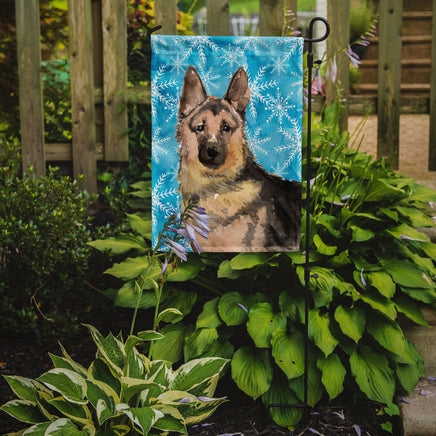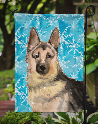 Decorate your space with our German Shepherd artwork on a Garden Flag. Bring a bit of Winter into your home with a Winter Garden Flag. Enhance the beauty of your garden, patio, or yard with Caroline's Treasures Decorative Garden Flag, proudly made in the USA. Crafted from two pieces of thick, double-sided polyester fabric, this 2-ply garden flag is designed to withstand various weather conditions, making it water-resistant and weatherproof. Featuring correctly readable words on both sides, this garden flag offers a delightful visual experience from any angle. With its heavier weight, it stands out among other garden flags, ensuring stability and durability even in wind, rain, and snow. Measuring approximately 11 1/4 inches by 15 1/2 inches, this flag allows you to personalize your outdoor decor. It comes with a 1 1/2-inch sleeve sewn in, allowing easy attachment to any standard garden flag stand or garden size porch hanger (sold separately). Make a statement in your outdoor space with Caroline's Treasures Decorative Garden Flag, a vibrant and high-quality flag that adds color and personality to your surroundings. Proudly made in the USA, it's a symbol of quality craftsmanship and attention to detail.