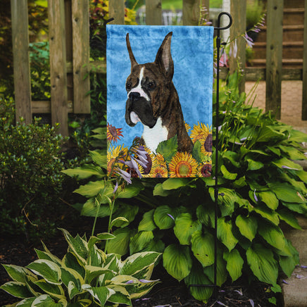 Decorate your space with Caroline's Treasures Boxer artwork on a Garden Flag. Bring a bit of Summer into your home with a Summer Garden Flag. Enhance the beauty of your garden, patio, or yard with Caroline's Treasures Decorative Garden Flag, proudly made in the USA. Crafted from two pieces of thick, double-sided polyester fabric, this 2-ply garden flag is designed to withstand various weather conditions, making it water-resistant and weatherproof. Featuring correctly readable words on both sides, this garden flag offers a delightful visual experience from any angle. With its heavier weight, it stands out among other garden flags, ensuring stability and durability even in wind, rain, and snow. Measuring approximately 11 1/4 inches by 15 1/2 inches, this flag allows you to personalize your outdoor decor. It comes with a 1 1/2-inch sleeve sewn in, allowing easy attachment to any standard garden flag stand or garden size porch hanger (sold separately). Make a statement in your outdoor space with Caroline's Treasures Decorative Garden Flag, a vibrant and high-quality flag that adds color and personality to your surroundings. Proudly made in the USA, it's a symbol of quality craftsmanship and attention to detail.