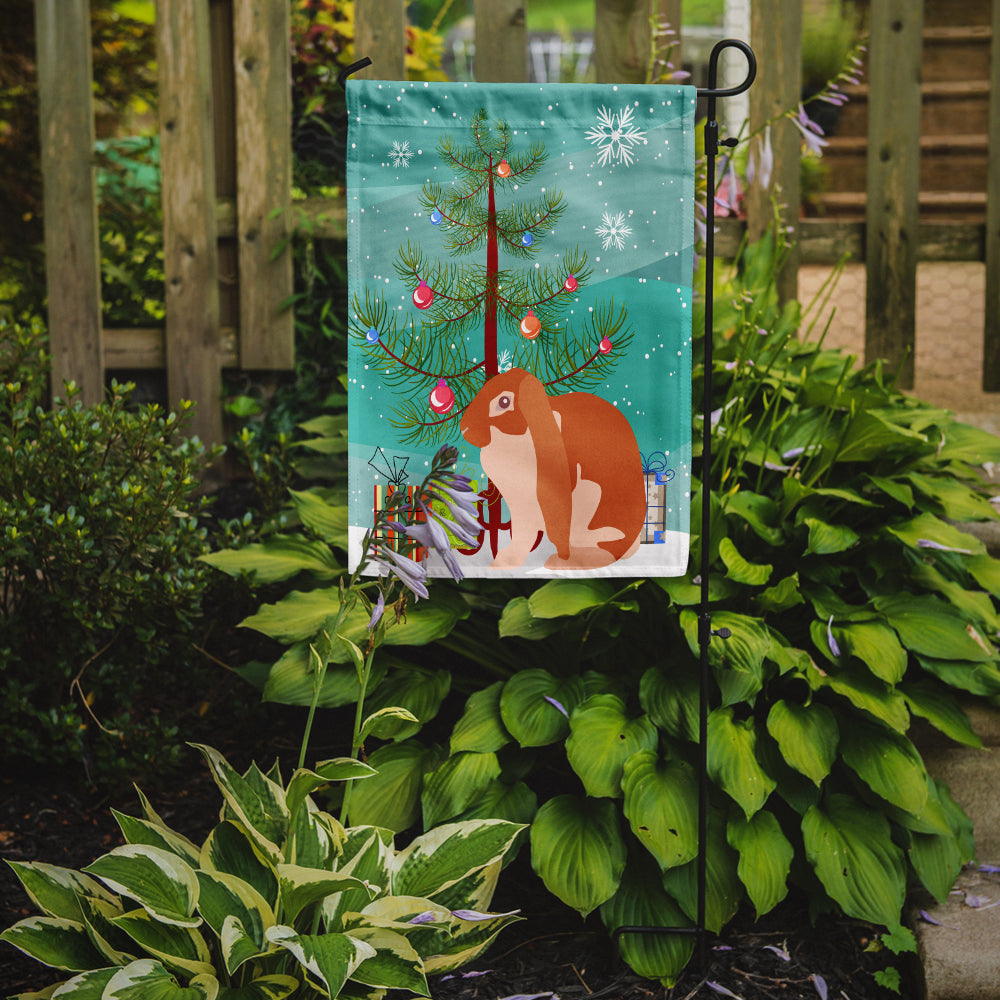 Decorate your space with our Christmas English Lop Rabbit artwork on a Garden Flag. Enhance the beauty of your garden, patio, or yard with Caroline's Treasures Decorative Garden Flag, proudly made in the USA. Crafted from two pieces of thick, double-sided polyester fabric, this 2-ply garden flag is designed to withstand various weather conditions, making it water-resistant and weatherproof. Featuring correctly readable words on both sides, this garden flag offers a delightful visual experience from any angle. With its heavier weight, it stands out among other garden flags, ensuring stability and durability even in wind, rain, and snow. Measuring approximately 11 1/4 inches by 15 1/2 inches, this flag allows you to personalize your outdoor decor. It comes with a 1 1/2-inch sleeve sewn in, allowing easy attachment to any standard garden flag stand or garden size porch hanger (sold separately). Make a statement in your outdoor space with Caroline's Treasures Decorative Garden Flag, a vibrant and high-quality flag that adds color and personality to your surroundings. Proudly made in the USA, it's a symbol of quality craftsmanship and attention to detail.