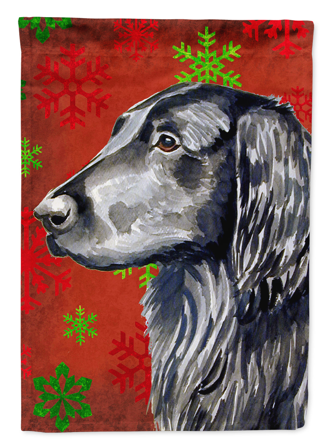 Flat Coated Retriever Red Green Snowflakes Holiday Christmas Flag Garden Size